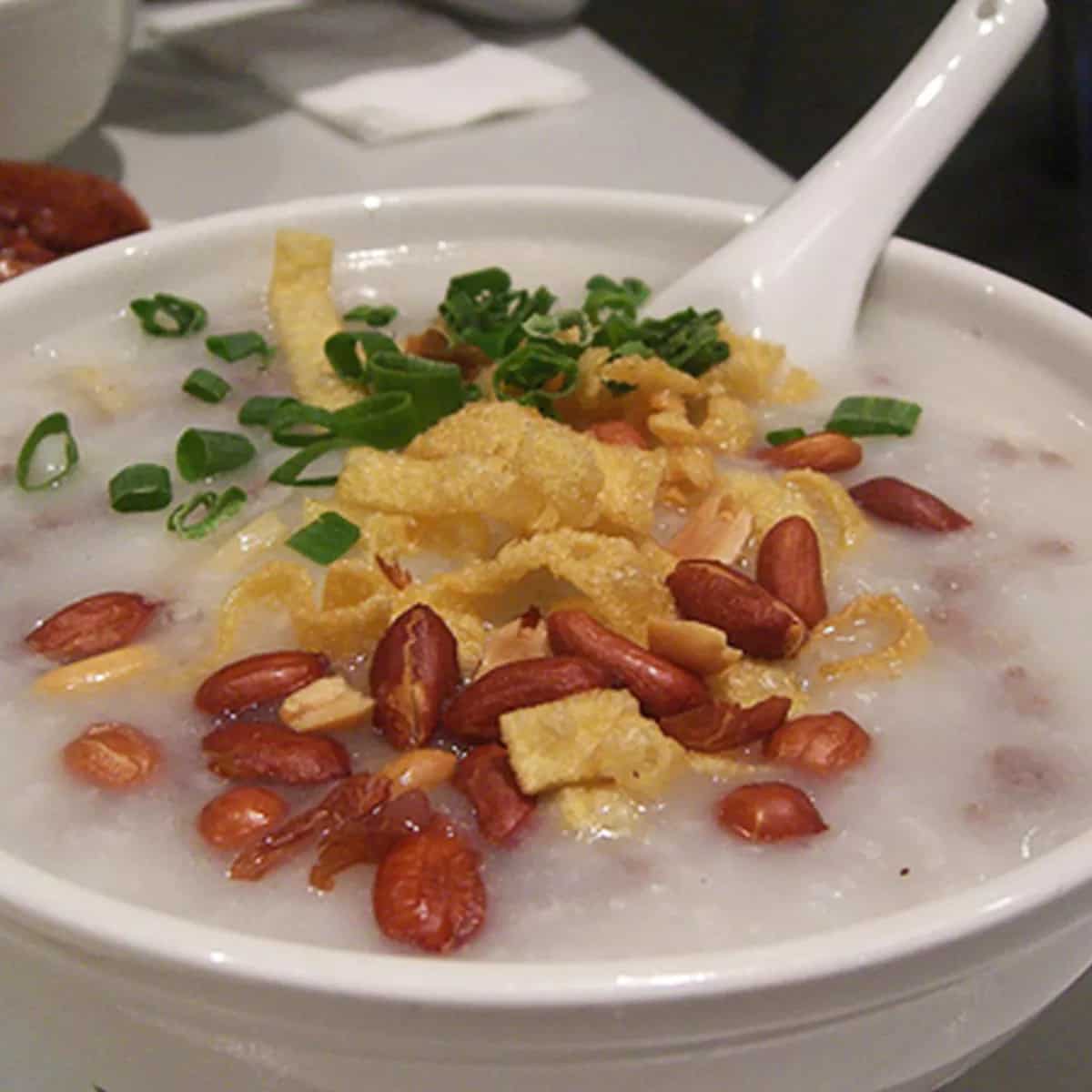 For a visual, check this Sampan Congee bowl showing a similar seafood-packed style with peanuts and crispy bits.